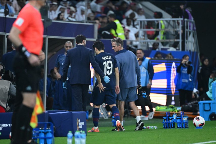 Lee Kang-in a finalement cédé sa place dans la première demi-heure de jeu, entre la 23e et la 30e minute selon les observations. Il a été remplacé par le jeune Senny Mayulu. Le joueur a quitté la pelouse aidé par le staff médical, laissant craindre une blessure musculaire.